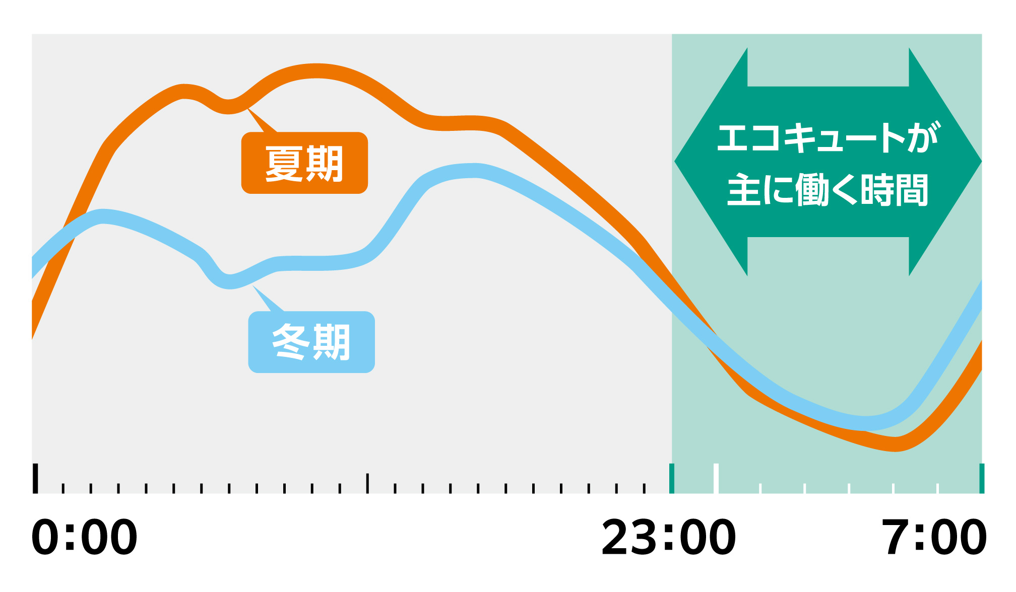 ※お湯の使い方により昼間も運転することがあります。